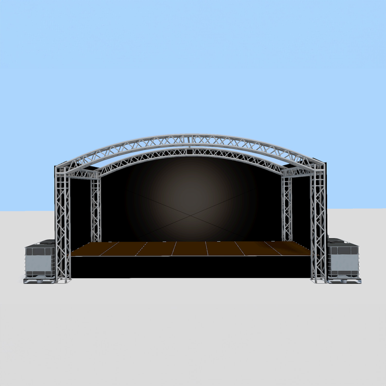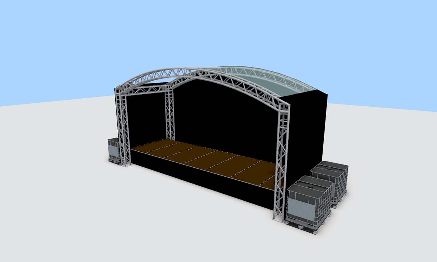 Het dakzeil is transparant waardoor het podium een ruimtelijk effect heeft.